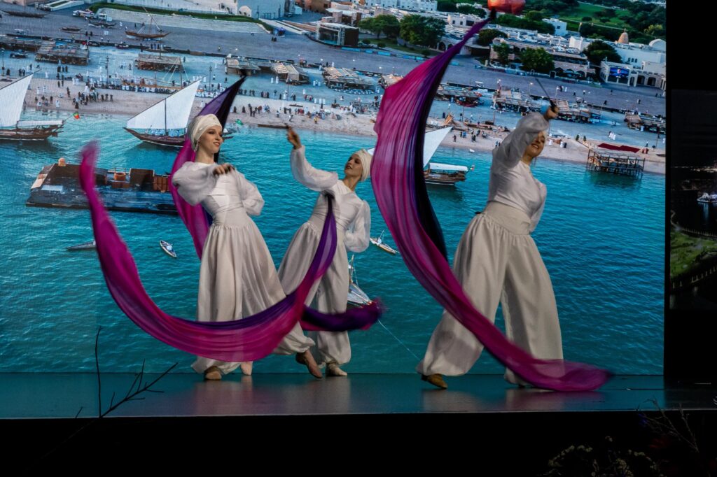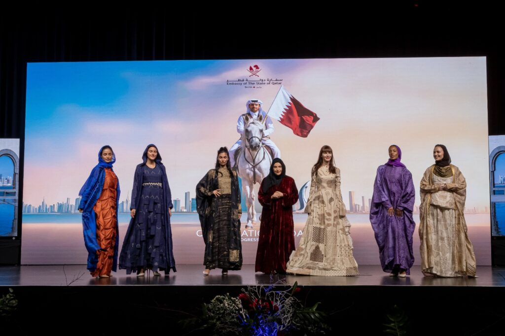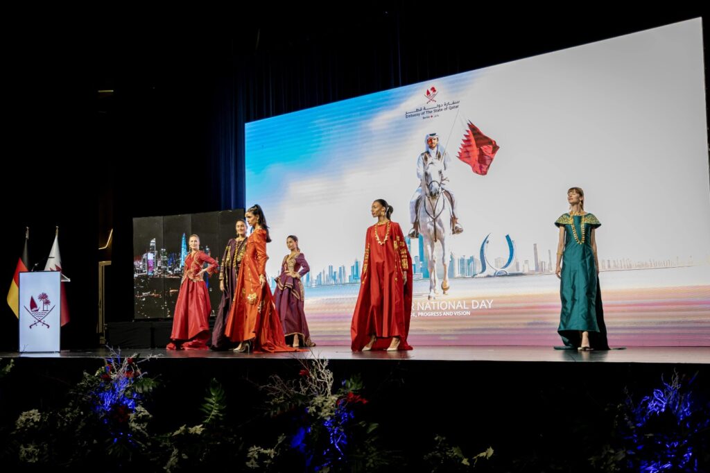 A falconry display—embodying one of the deepest traditions of Bedouin heritage—brought the spirit of the desert and a sense of dignity to the heart of Berlin, evoking the authenticity of Qatari values. This was followed by an exceptional fashion show in which accomplished Qatari designers presented collections that embodied the “Heritage of Qatar.” Inspired by traditional textile arts such as Al Sadu and by ancestral geometric motifs, the designs transformed fabric into a narrative of identity, turning the runway into a moving canvas that told a story of authenticity and innovation. These live performances became a vivid cultural dialogue, offering the international audience a heritage not confined to museums, but living, breathing, and evolving.